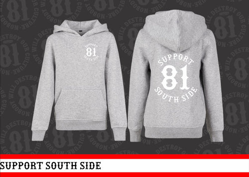 Kids Hoodie "Support South Side 81" - grau, weisser Print