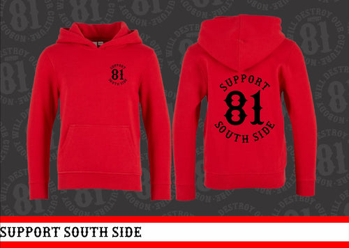 Kids Hoodie "Support South Side 81" - rot, schwarzer Print